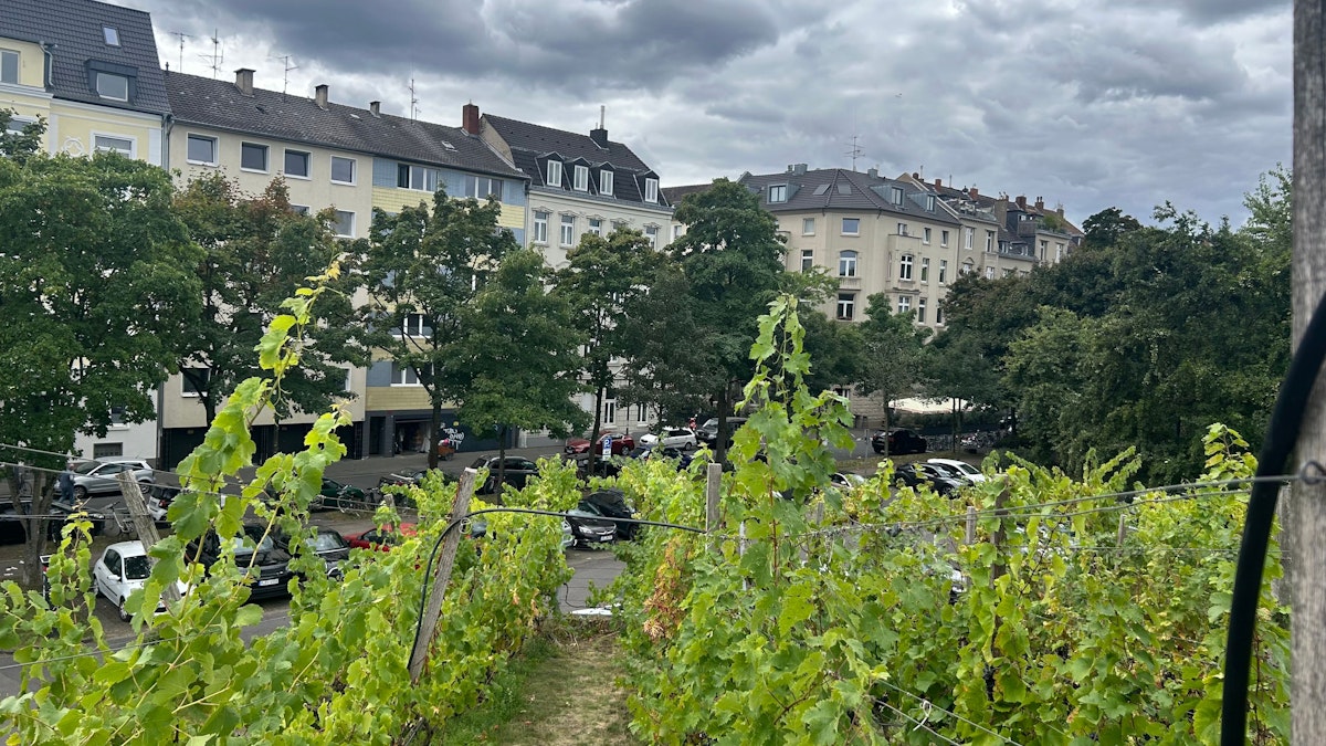 Ein Highlight des Weindepots ist der Weinberg auf dem Dach, das sich über fast 1.000 Quadratmeter erstreckt. Die Begrünung war Voraussetzung für die Baugenehmigung des modernen Gebäudes als Ersatz für den vorherigen Parkplatz. Der Vinum vivens präsentiert Besuchern eine grüne, lebendige Landschaft mit einem einzigartigen Blick auf Köln.